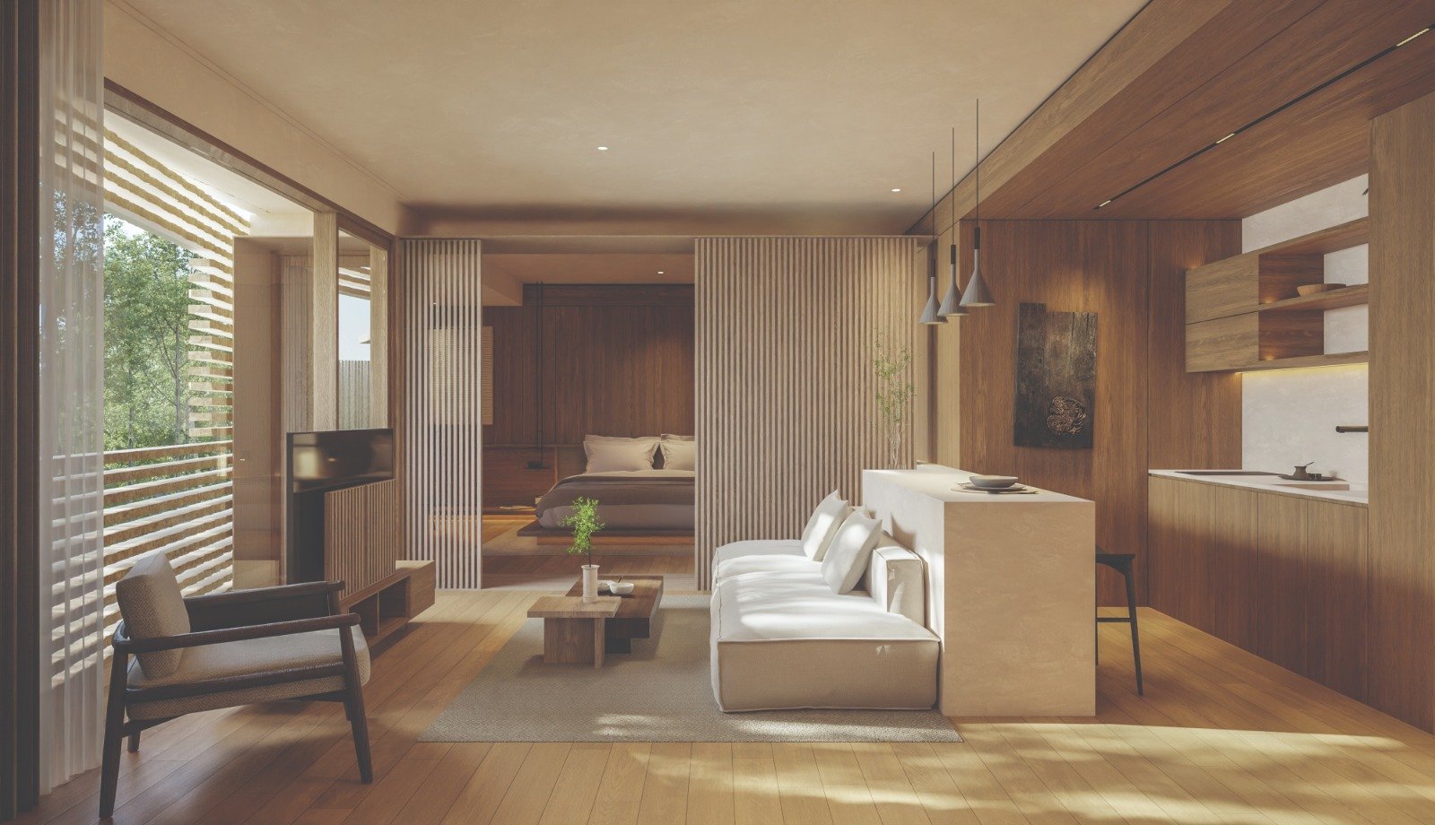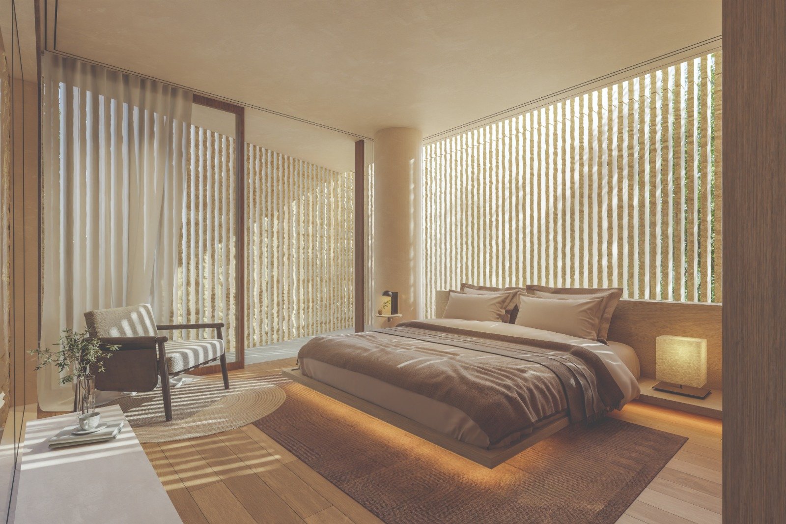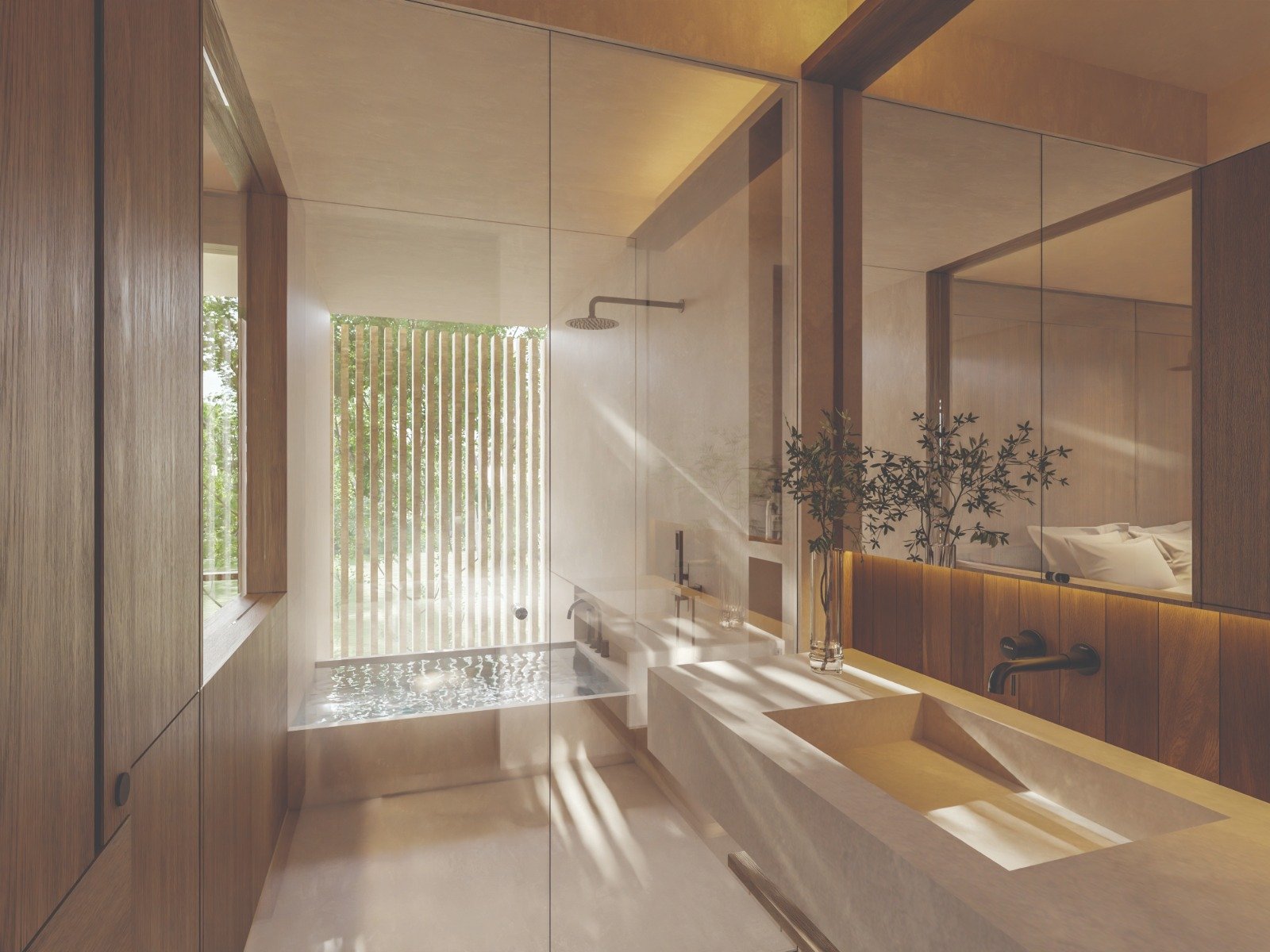 Experience effortless luxury in the open-plan living and dining spaces, complemented by a fully equipped SMEG kitchen and tranquil bedrooms designed for deep rest and rejuvenation. The spa-inspired bathrooms feature elegant bathtubs and floor-to-ceiling windows, offering moments of serenity and mindfulness in every detail.