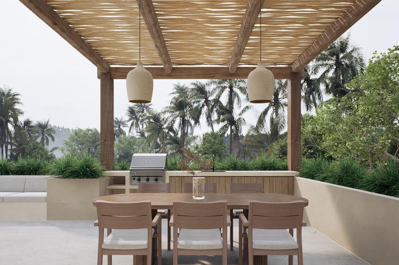 Each detail is crafted with elegance and function in mind — from the modern kitchen with wooden finishes to the spacious lounge designed for relaxation. A rooftop terrace adds an elevated outdoor experience, ideal for sunset gatherings or quiet evening retreats surrounded by lush tropical greenery.