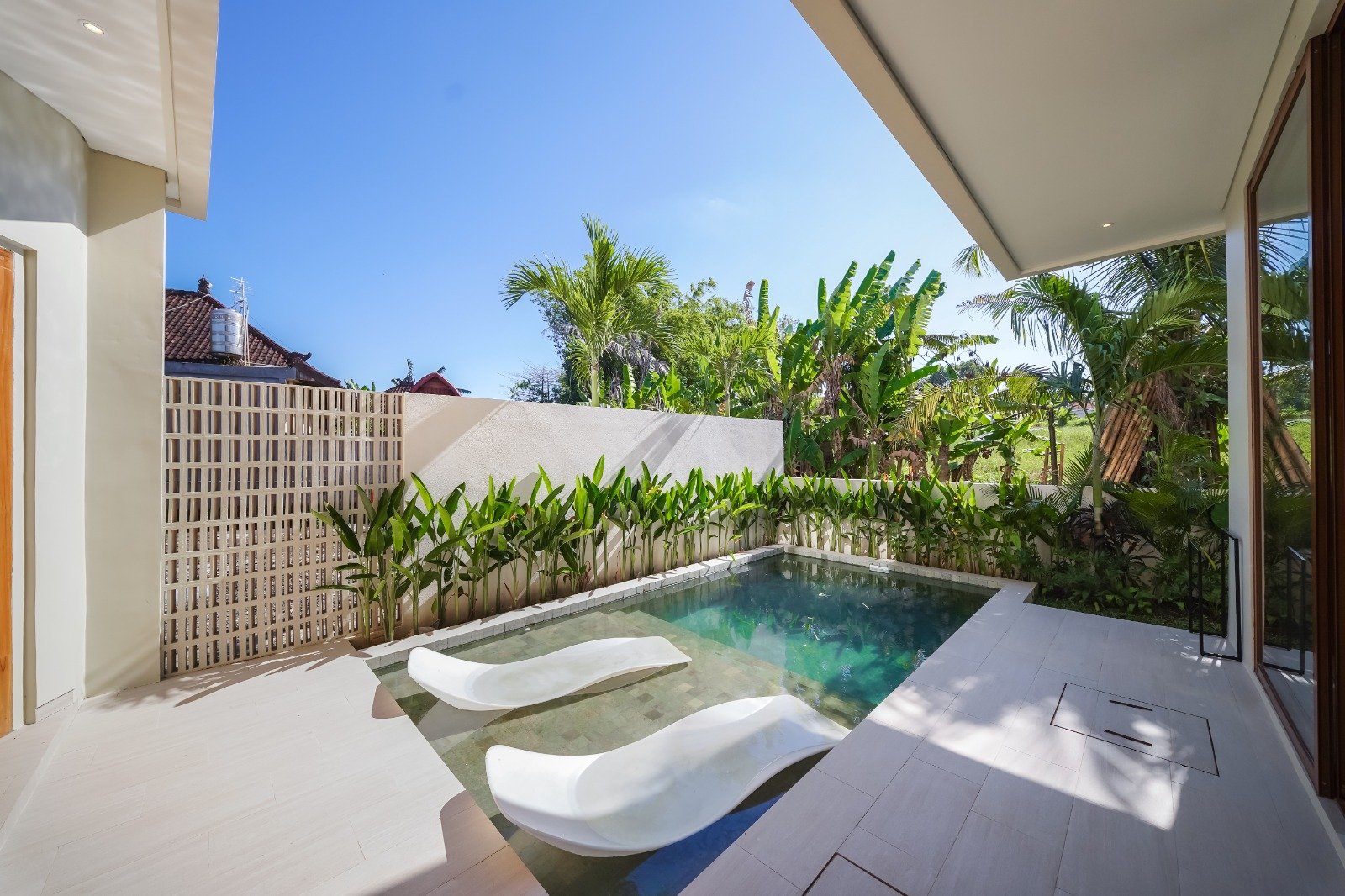 The villa features an open-plan living space, fully equipped kitchen, and seamless indoor-outdoor design. Highlights include a private pool, rooftop sunset lounge, and peaceful rice field views—making it highly attractive to premium travelers and ensuring strong occupancy year-round.