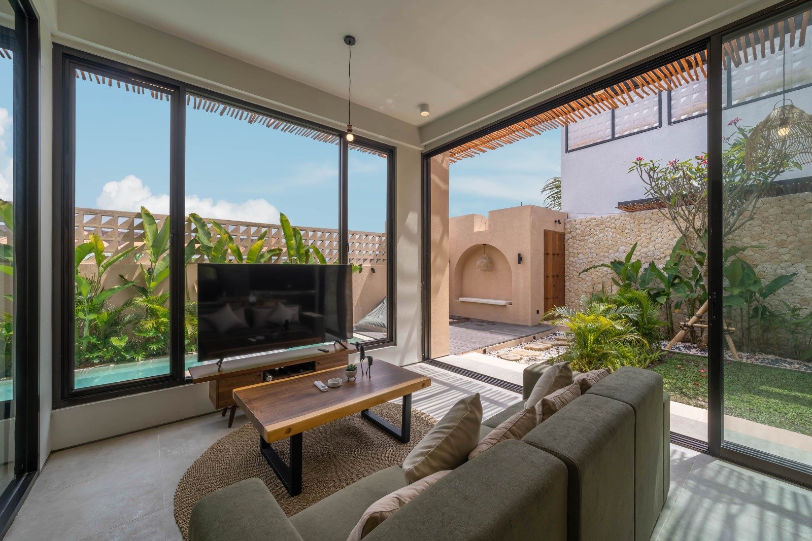 Discover your ideal Bali escape at Tumbak Bayuh Villa, a modern two-bedroom residence that perfectly blends style, comfort, and tranquility. Nestled in the peaceful heart of Tumbak Bayuh and just a few minutes from Pererenan Beach, cozy cafés, and boutique shops, this villa offers the essence of refined tropical living with its sleek contemporary design and natural charm.