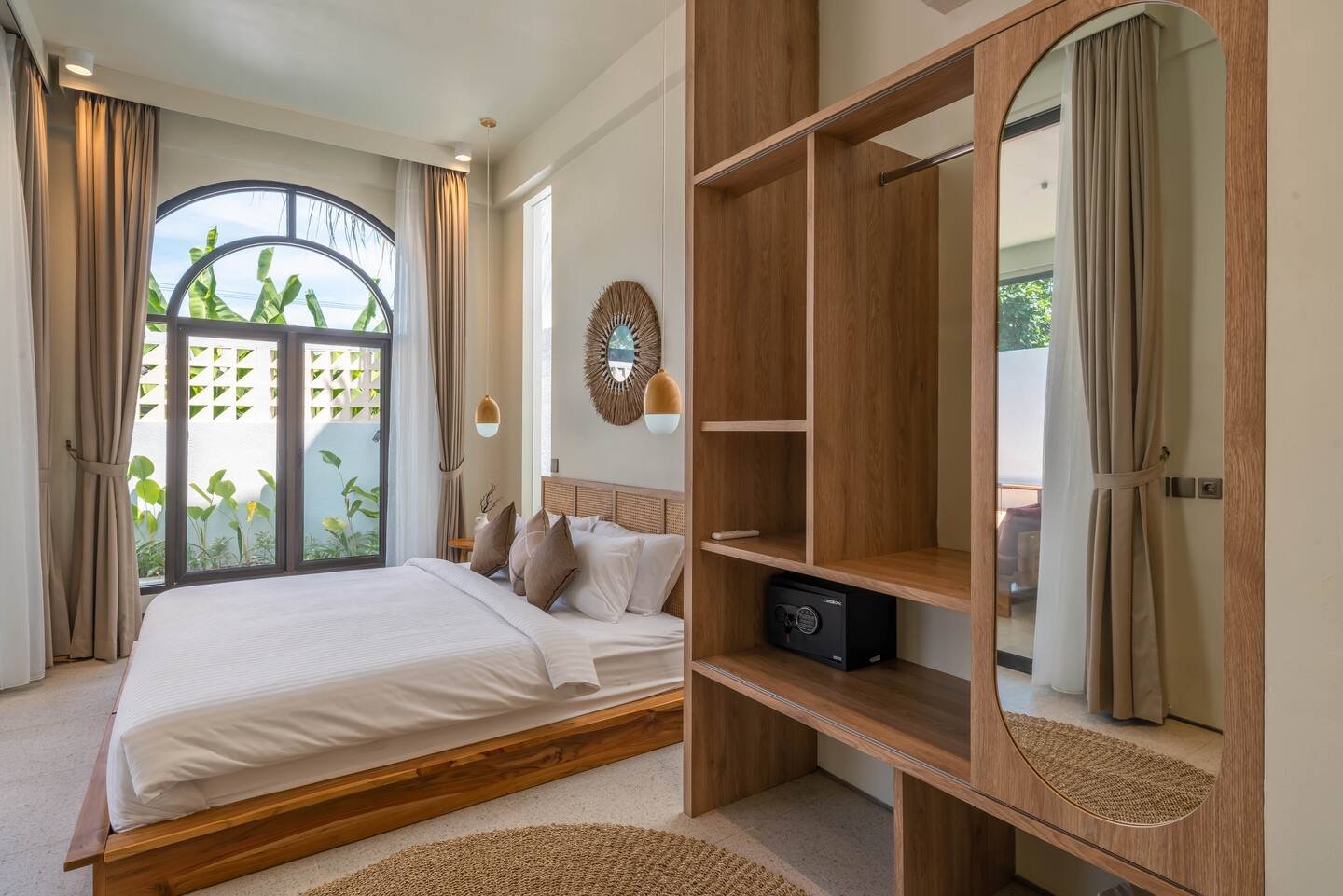 The elegant two-story layout creates a seamless connection between indoor and outdoor spaces. The ground floor features a bright living area that opens to a lush garden and private pool, providing the perfect setting for relaxation or entertaining. A modern kitchen and dining area add to the comfort, while both bedrooms include ensuite bathrooms for privacy and convenience. Ascend to the second floor, where a bright and airy lounge area awaits, offering a peaceful retreat filled with natural light through expansive floor-to-ceiling windows. From here, you can admire sweeping views of the surrounding greenery, allowing nature’s calm to flow into the space, and step out onto a charming patio — a truly enchanting spot perfect for relaxing with a morning coffee or enjoying the gentle evening breeze as the sun sets over Tumbak Bayuh.