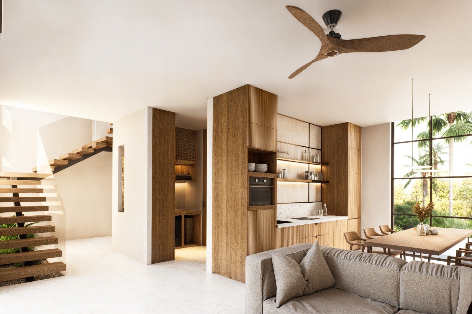 This well-designed 3-bedroom private villa offers an elevated modern tropical living experience with a layout that emphasizes space, privacy, and lifestyle comfort. Each bedroom is thoughtfully designed and features an en-suite bathroom, ensuring privacy and convenience for both residents and guests.