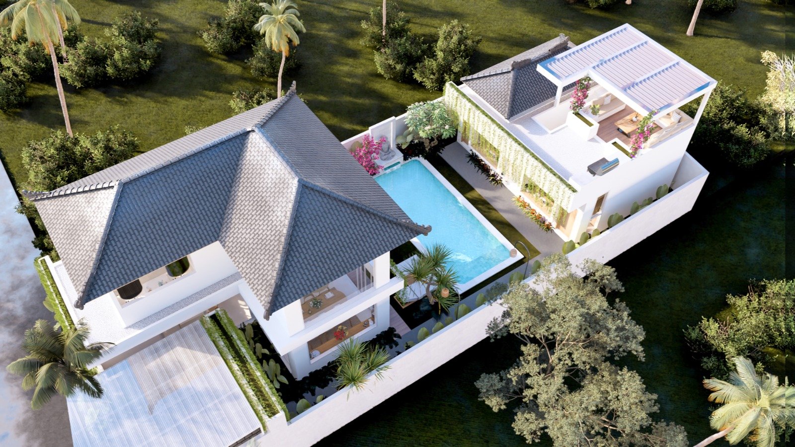 Charming 3-Bedroom Leasehold Villa in Jimbaran, This beautifully designed 3-bedroom villa is located in the peaceful and rapidly developing area of Jimbaran. Offered at USD 355,000, the property comes with a leasehold title of 28 years, with the option to extend,making it a secure and strategic long-term investment. The villa is fully furnished and move-in ready, featuring three spacious bedrooms each with en-suite bathrooms, a modern open-plan kitchen, and a bright living area that opens to a private swimming pool,ideal for both relaxing and entertaining.