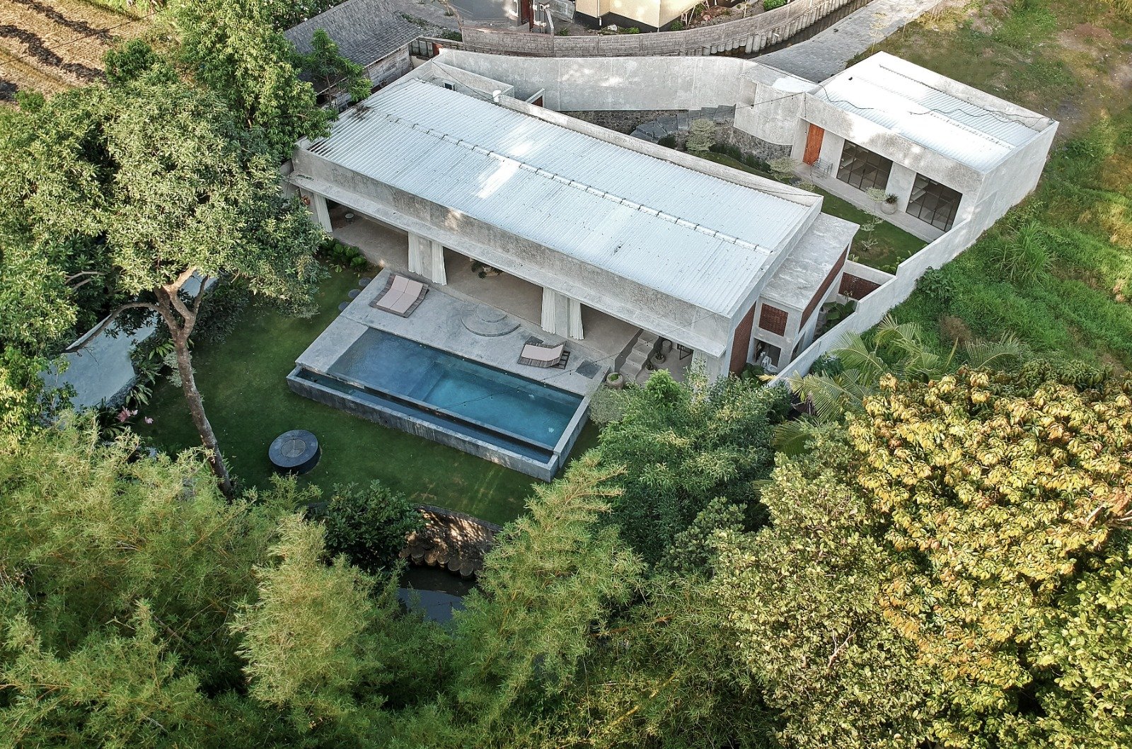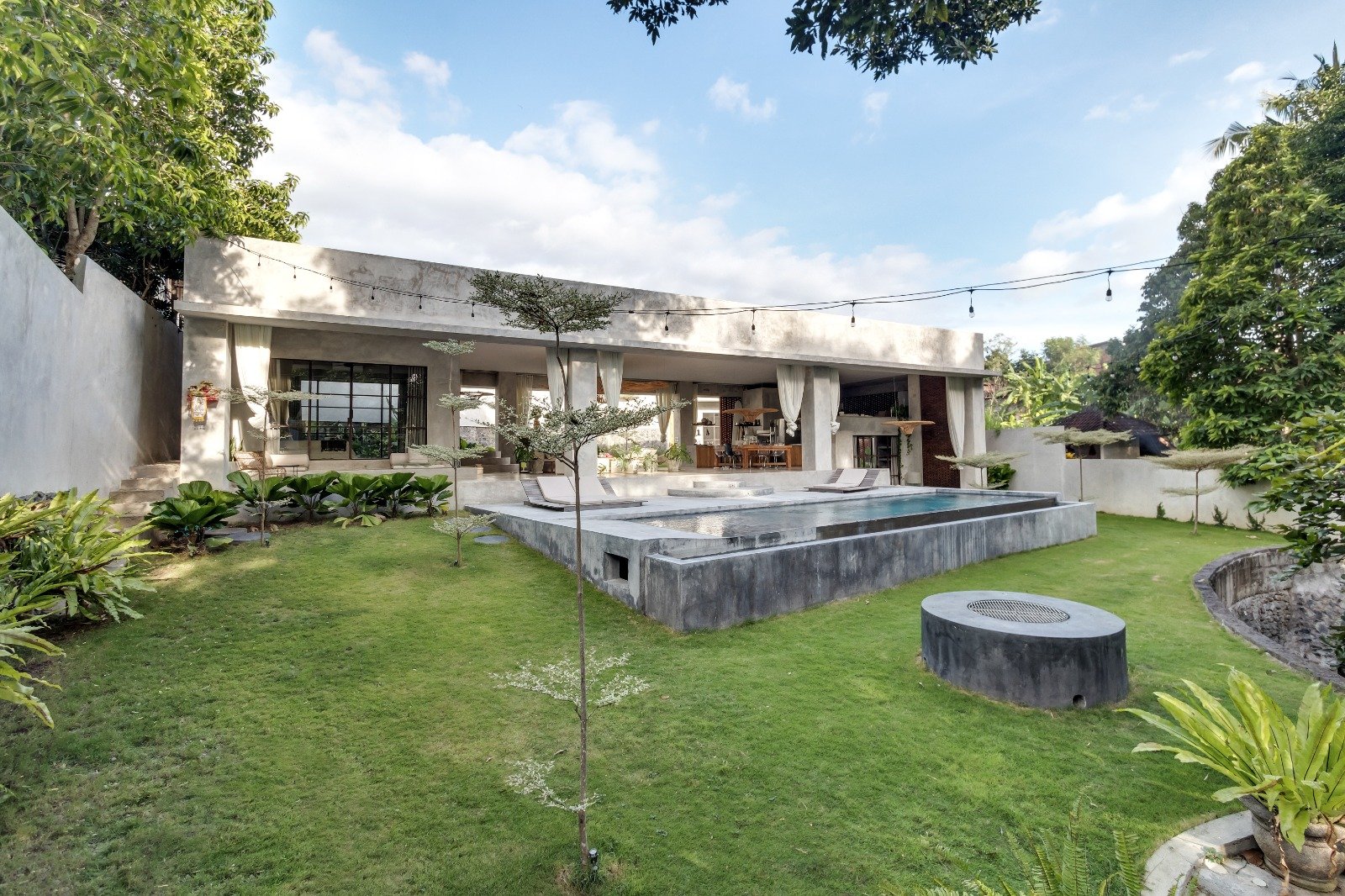 Highlights include an ocean-like swimming pool with a gentle descent, outdoor showers, a lush garden by a small river, and an ice bath. Completely open to the elements, the villa embraces natural ventilation and indoor-outdoor living—perfectly in tune with Bali’s tropical climate.