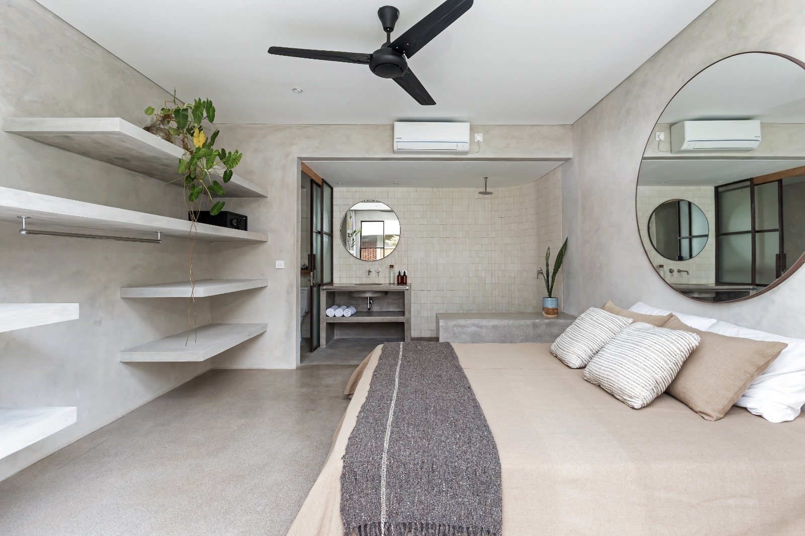 This stunning tropical brutalist villa is located in Pererenan, Canggu—just 2 minutes by scooter from the beach and surrounded by Bali’s vibrant beach clubs, restaurants, and creative community.
