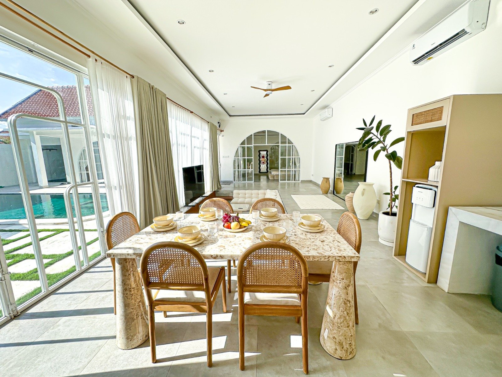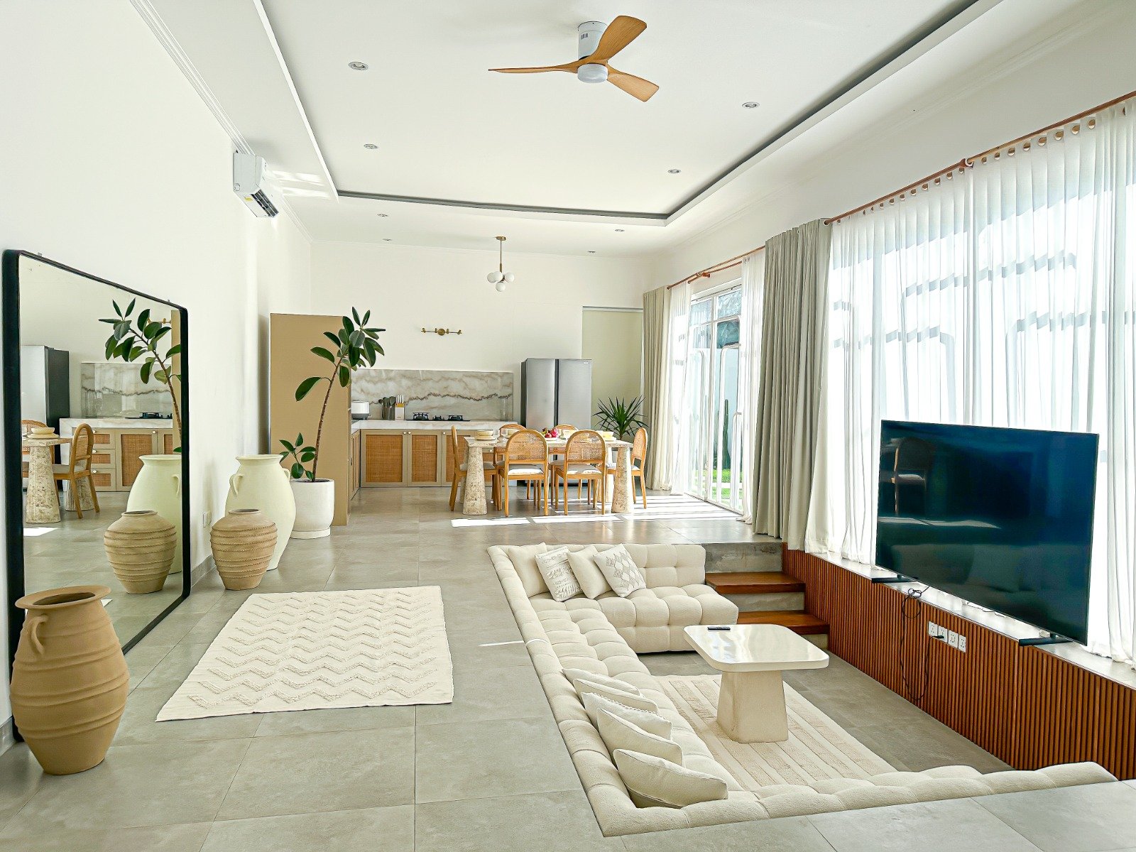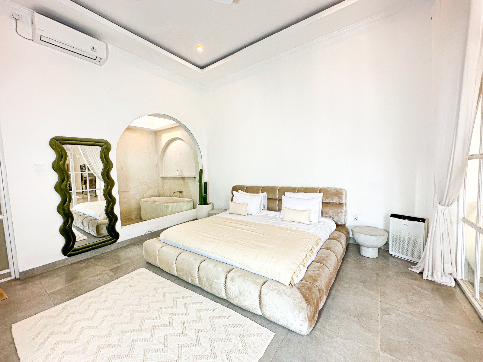 This stylish 3-bedroom villa offers the perfect blend of luxury, comfort, and tropical charm—located just 700 meters from the beach and within walking distance to iconic hotspots such as Finns Beach Club and Atlas Beach Club. Thoughtfully designed for modern living, the villa features a spacious layout, a fully equipped kitchen, a private sauna, a small gym, and an extra-large private pool with a built-in seating area. It comes fully furnished, making it move-in ready for those seeking both convenience and elegance.