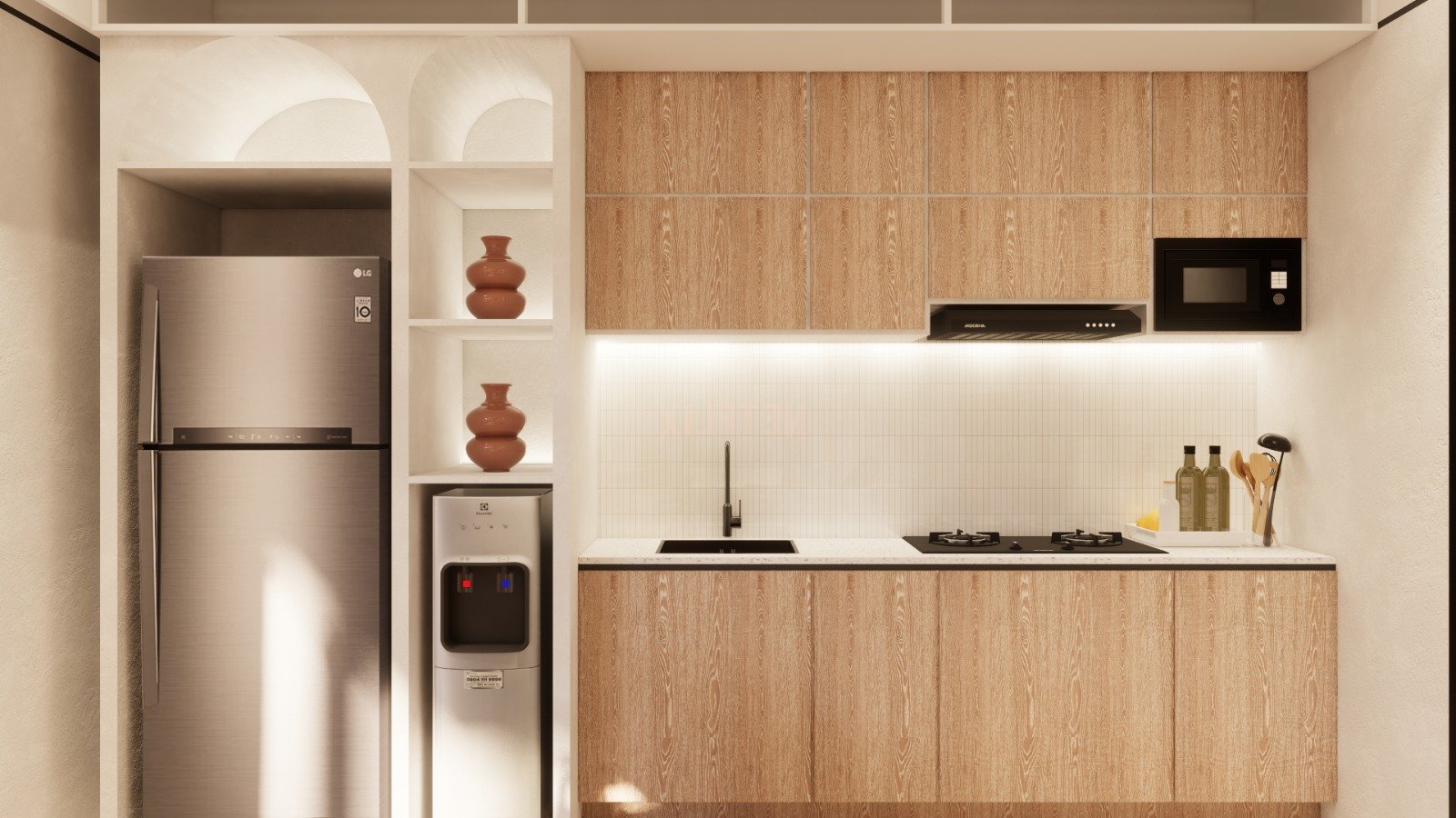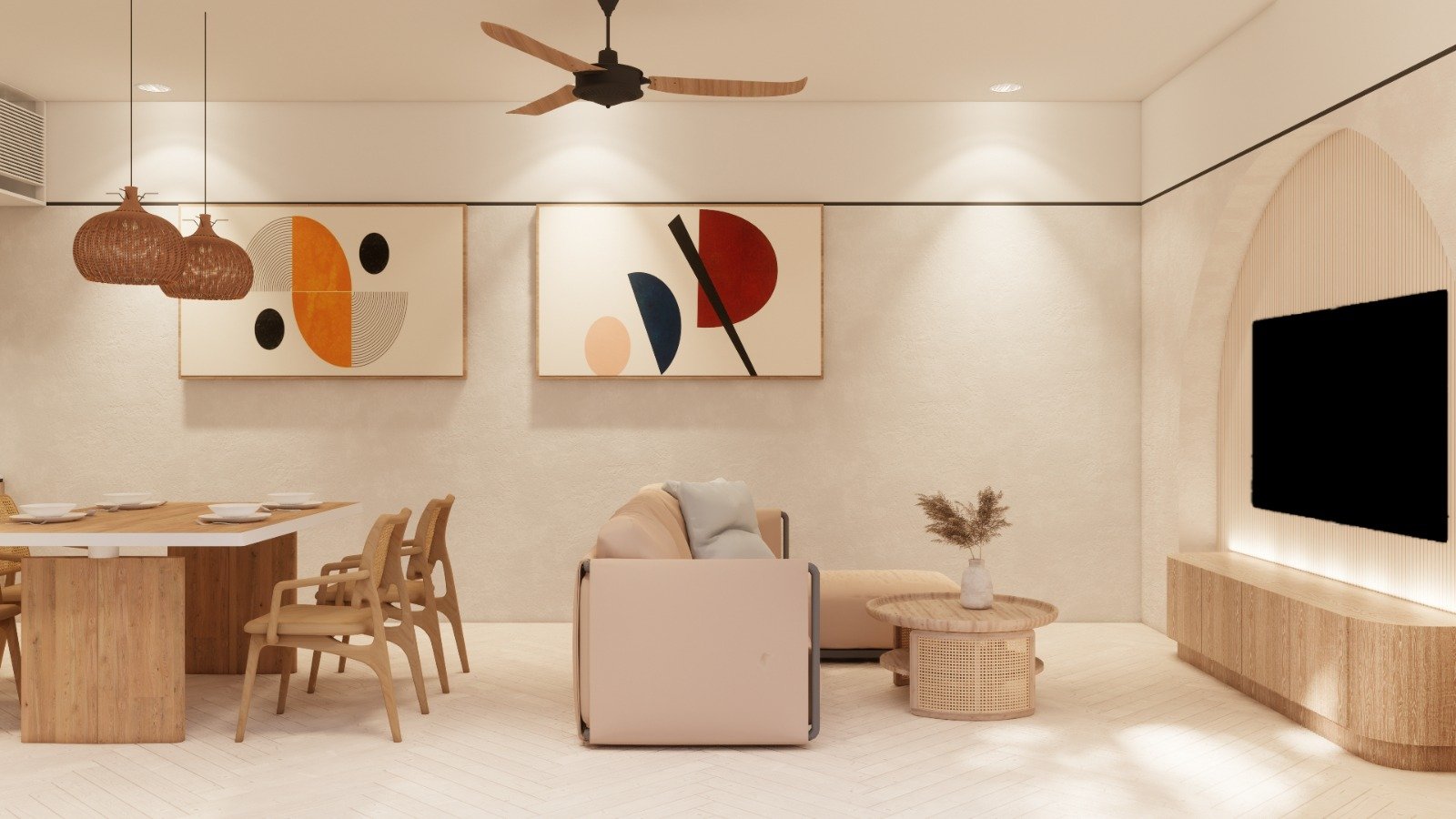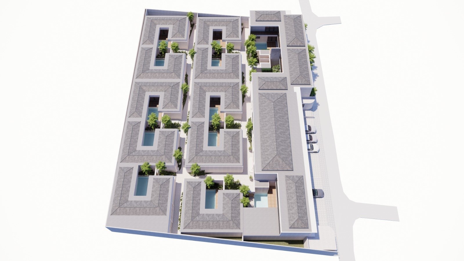 Each space is thoughtfully crafted to balance elegance and comfort, featuring spacious bedrooms with custom wood wardrobes, sleek modern bathrooms, and an open-plan living and dining area that flows seamlessly into a compact yet functional kitchen. The centerpiece of the home is a private swimming pool surrounded by lush greenery, creating a tranquil indoor-outdoor living experience.