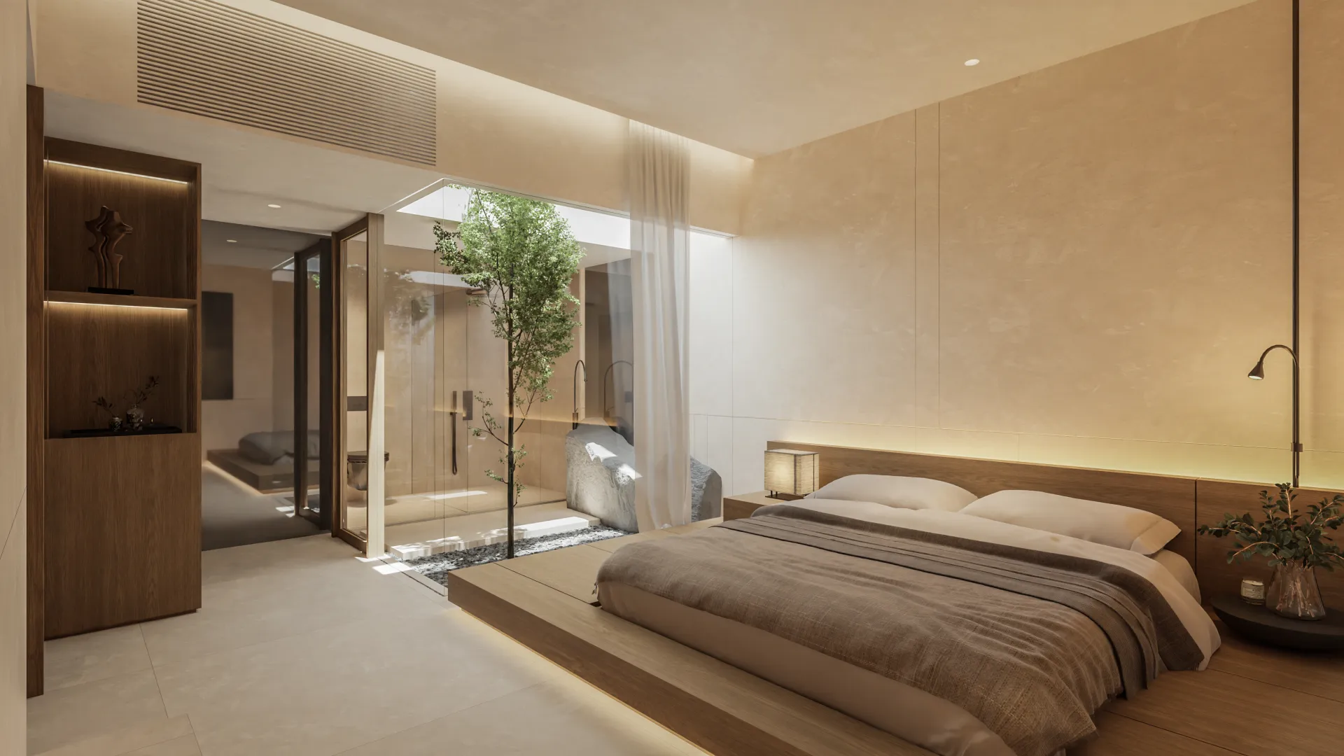 Each of the three bedrooms is a spacious master suite with ensuite bathrooms, offering privacy, warmth, and understated elegance. The villa also features a purified water system and biophilic lighting design that mirrors the natural rhythm of the day, enhancing both comfort and well-being. Within the gated high-end community, tree-lined walking paths and the signature Eucalyptus Forest Walk offer a refreshing connection to nature—inviting residents to embrace a slower, more balanced, and luxurious way of living at Villa Canggu.