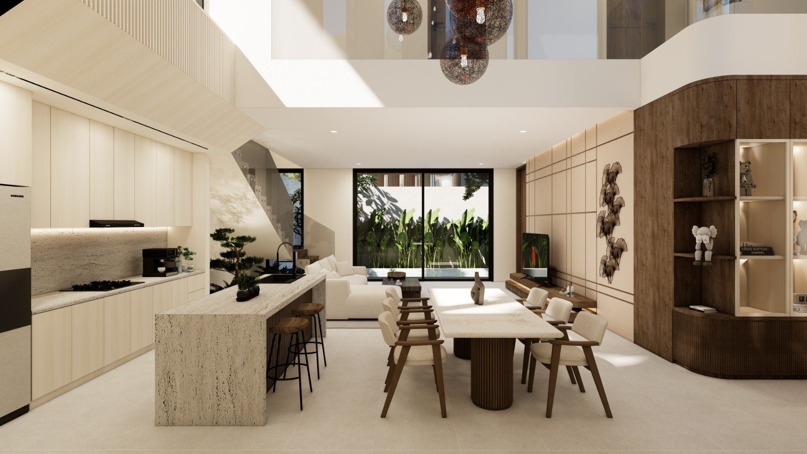 Each villa features spacious interiors with high ceilings, creating an airy and luxurious atmosphere complemented by elegant finishes and natural materials. The private plunge pool and open-concept living area seamlessly connect indoor and outdoor spaces, allowing you to enjoy Bali’s tropical breeze and tranquil ambiance.